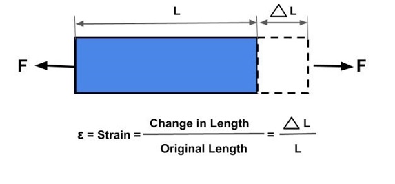 Secara matematis, regangan mekanis adalah rasio perubahan Panjang terhadap Panjang asli. Berikut adalah simulasi gaya terhadap regangan-tegangan.