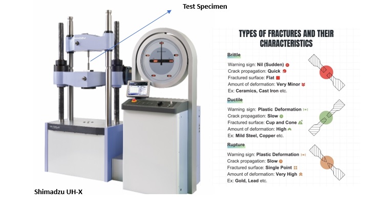 Standar pengujian untuk specimen bahan ulet menggunakan universal testing mesin. Berikut ini adalah grafik yang terjadi saat kita menguji bahan ulet: