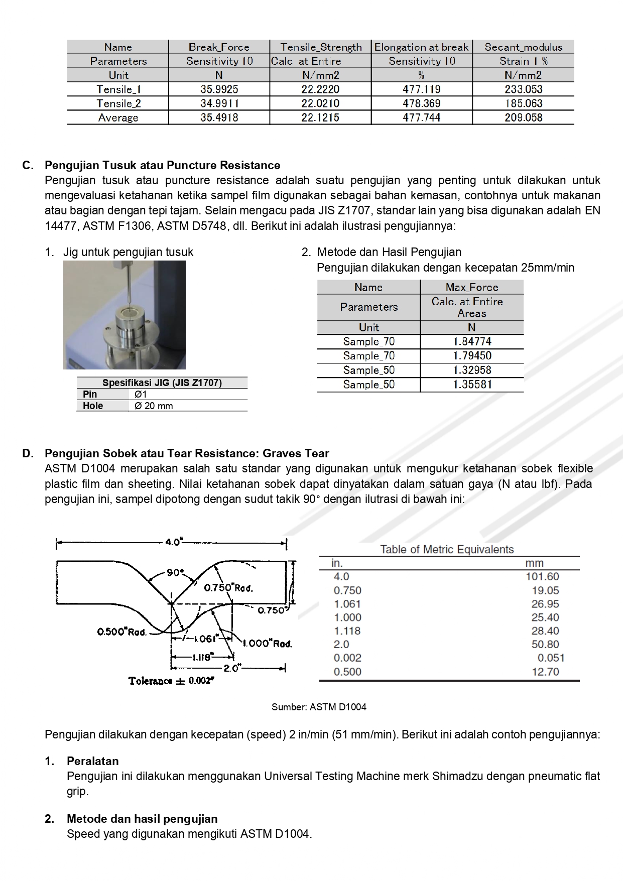 JENIS PENGUJIAN SAMPEL PLASTIC FILM & FLEXIBLE PACKAGING
