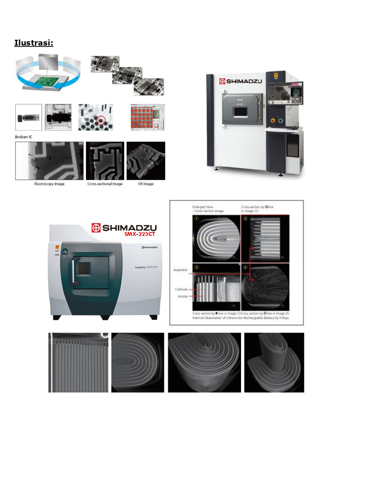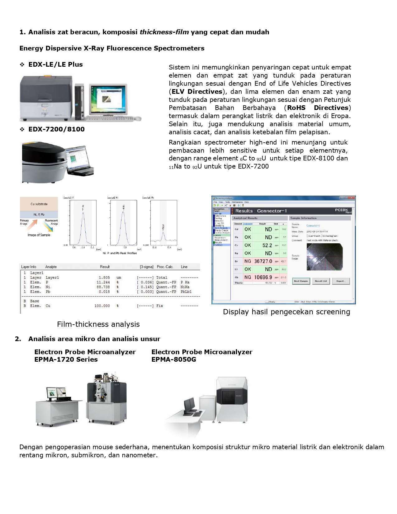 Application note ini memperkenalkan peralatan dan aplikasi terkait, seperti pengukuran zat berbahaya, analisis unsur, observasi bagian-bagian kecil, evaluasi sifat optik, dan evaluasi sifat mekanik.