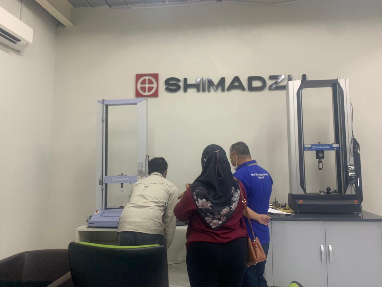 Agenda kunjungan tersebut membahas mengenai Kalibrasi KAN pada mesin Shimadzu Universal Testing Machine dan juga aplikasi pengujian sesuai standard Pengujian.