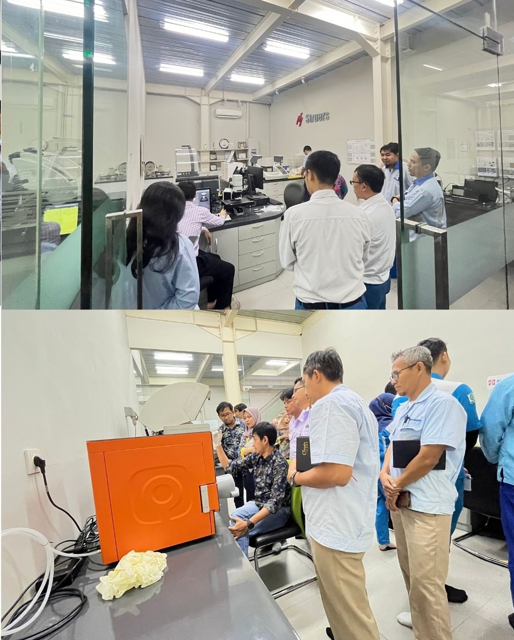 Sesi live demo menjadi salah satu daya tarik utama dalam kegiatan ini. Peserta diberi kesempatan untuk membawa sampel mereka dan langsung mengujinya menggunakan perangkat canggih seperti Shimadzu FTIR, Shimadzu EDX, Olympus CIX-100, dan SEM EDS. Didampingi oleh para ahli, para peserta tidak hanya memahami cara kerja alat-alat tersebut tetapi juga melihat hasil analisis yang relevan dengan kebutuhan industri. Pengalaman ini memberikan nilai tambah yang signifikan, terutama bagi peserta yang selama ini mencari solusi konkret dalam pengendalian kontaminasi. Banyak dari mereka mengapresiasi fasilitas dan bimbingan yang disediakan selama acara, sehingga menciptakan suasana diskusi yang aktif dan produktif.